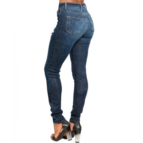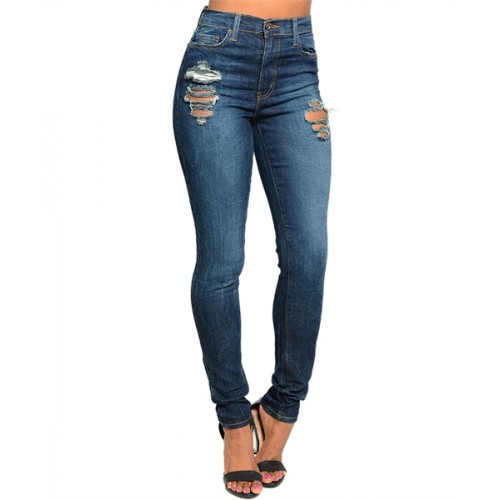 This funky ladies skinny jeans features a slim, stretch fit leg with semi faded medium wash. Ripped front detailing.