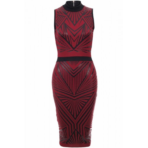 J-Lo Aztec Printed Two Piece Suit Made in: UK TOP Textured Fabric High Neck Sle..