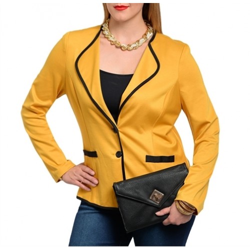 This sassy bold blazer features a contrast colored trim design with front welt pockets. Slim, sexy fit.